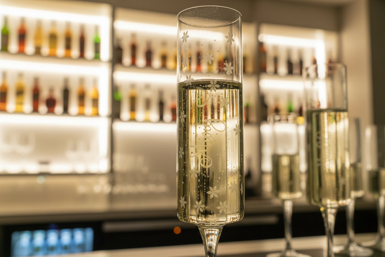 - Small snowflakes laser engraved scattered around the glass